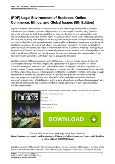 Download Legal Environment Business Online Commerce PDF online is a convenient and frugal way to read Legal Environment Business Online Commerce you love right from the comfort of your own home. Yes, there sites where you can get PDF "for free" but the ones listed below are clean from viruses and completely legal to use.